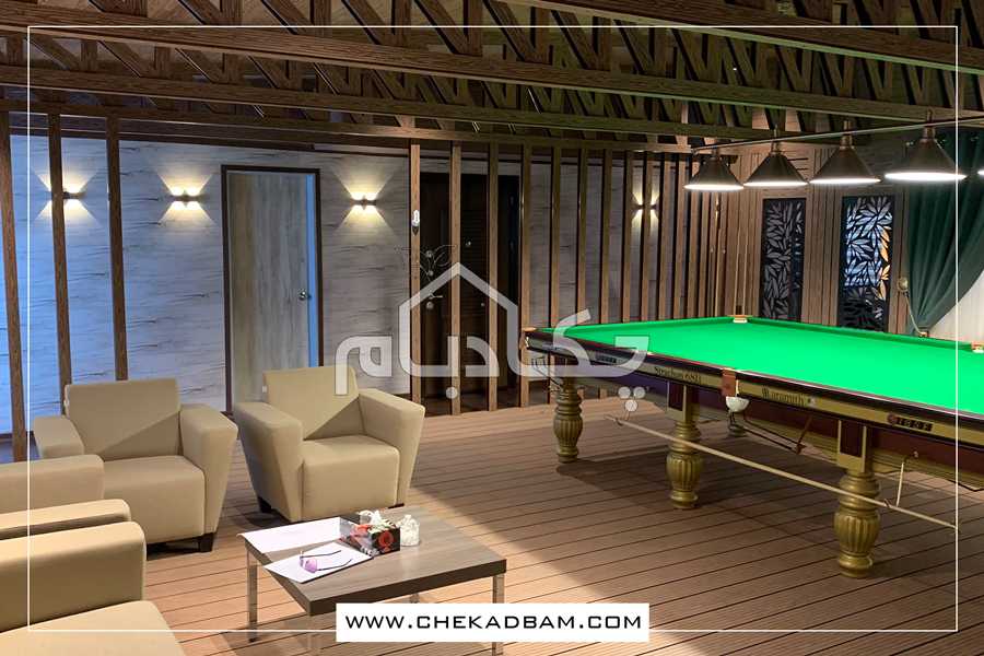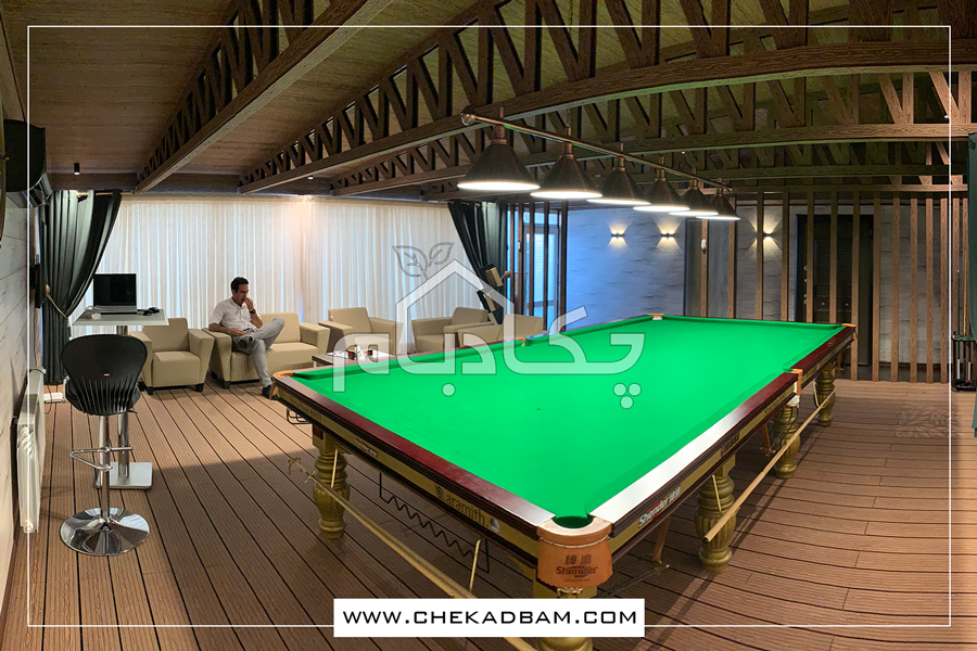 جنس سازه از اسکلت فلزی بوده و متریال به کار رفته در سقف و بدنه کار، ساندویچ پانل شرکت ماموت بوده،جنس نمای بیرون سازه چوب پلاست ضد آب و با دوام بوده.