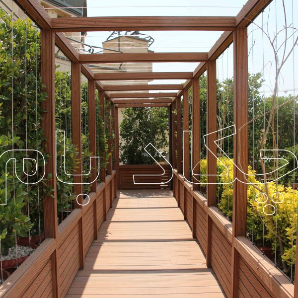 محوطه سازی به کمک چمن مصنوعی، مشخص کردن مسیر های حرکتی با دک چوبی، قلوه سنگ و اجرای نورپردازی در قسمت زیرین قلوه سنگ ها، کاور جان پناه با پوشش سبز و کاور یکسره چوب پلاست، قرار دادن آلاچیق ساده 4 *4 با دیوار های CNC از سری اهداف اجرایی این پروژه بوده.