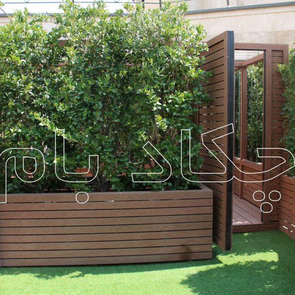بنا به درخواست کارفرمای محترم ابتدا کاور تائسیسات با دیوار سبز مدولار و چوب پلاست انجام شده، سپس ترکیب آبنمای بو باران با نیمکت و قراردادن پرگولا به عنوان سقف بین کاور های تائسیسات قرار گرفته شده است.