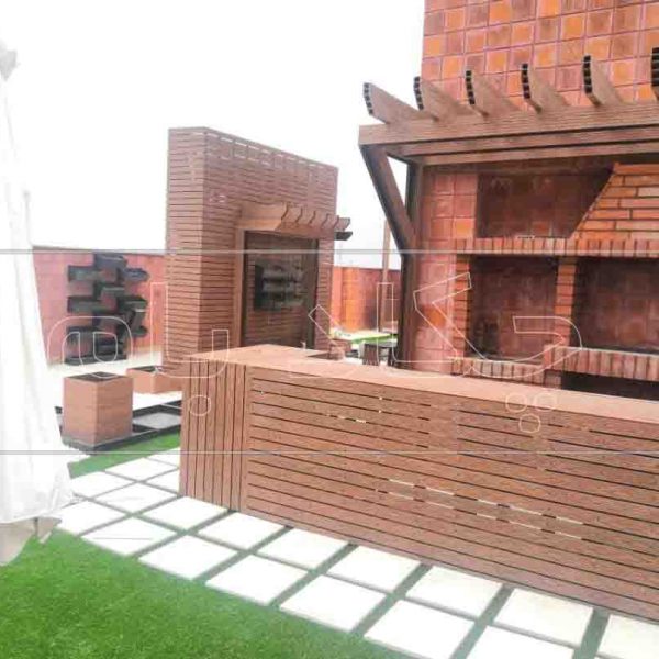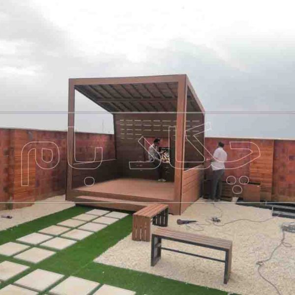 طبق درخواست کارفرمای محترم ابتدا تاسیسات بام ایشان با دیوار های چوب پلاست کاور شده سپس آبنمای طرح باران به عنوان المانی برای دلنشین تر کردن فضا اضافه شده.